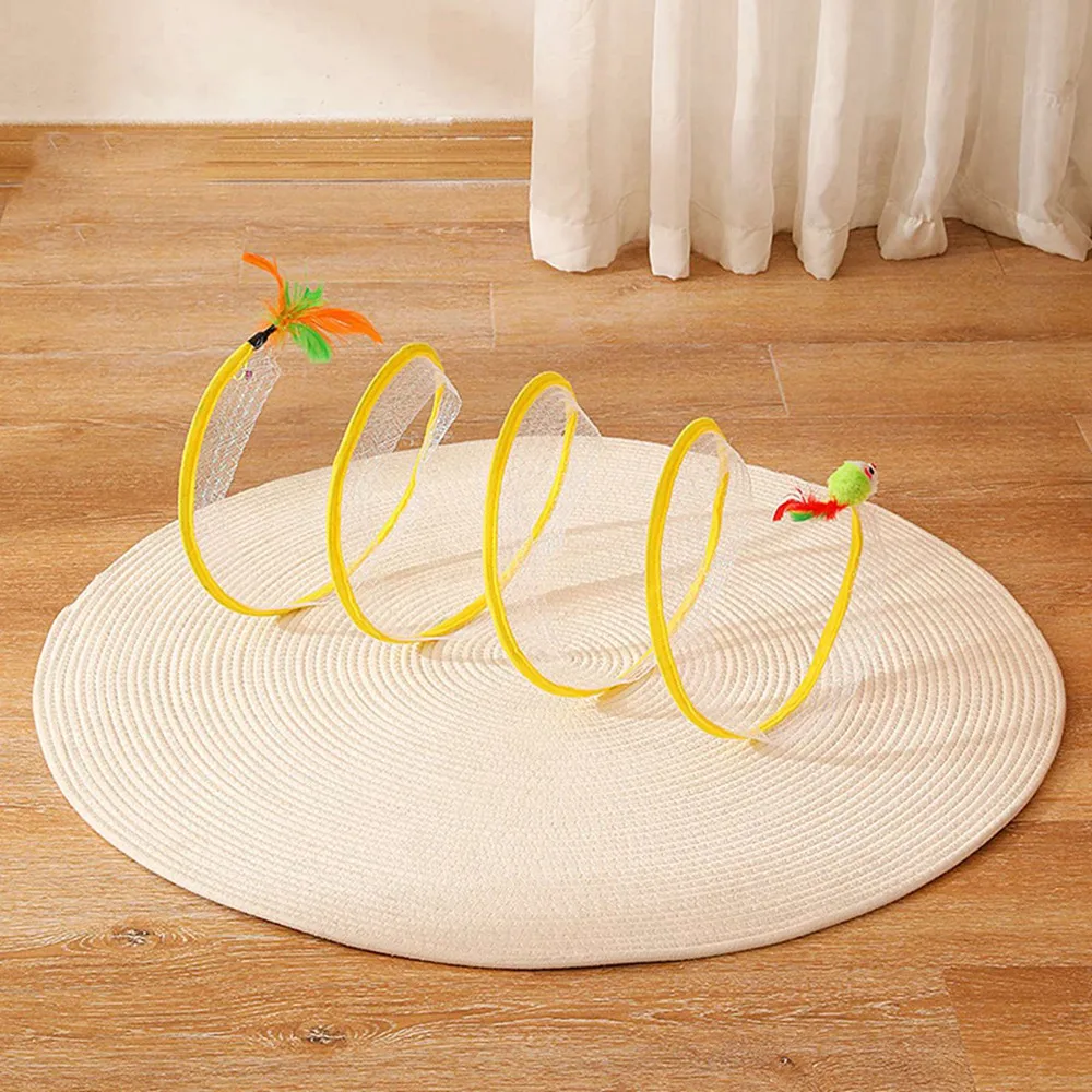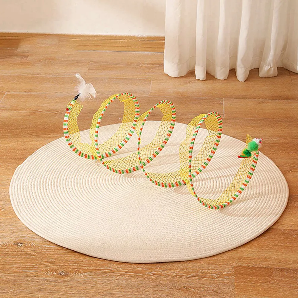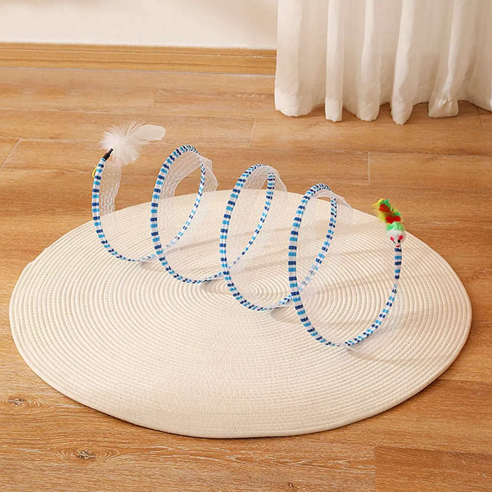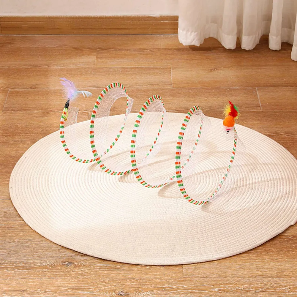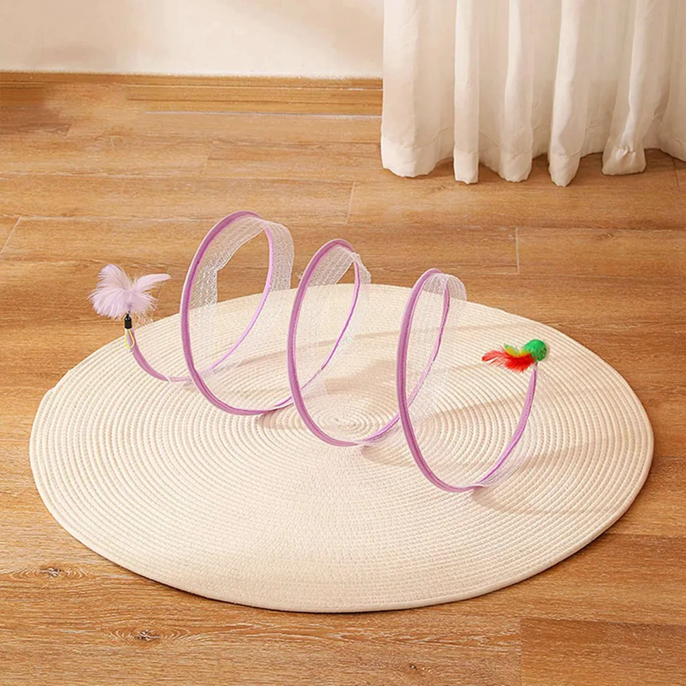 Feature:[Toys for self-entertainment]: The toys in the tunnel are hung for the enjoyment of the cat, which is convenient for the owner to interact with the pet, and when you are not there, the small animals can also play by themselves.[Two-in-one toy]: It is both a tunnel toy and a ridicule stick, with different feathers and mice on both sides, which are all toys that cats like every day.[Features]: There are some toys hanging inside for cats to play with. Elastic mesh material that can withstand the scratching action of cats. A variety of styles are available.[Foldable]Foldable tunnel for compact storage and travel carrying, can be easily folded and stored when not in use. It’s convenient to take anywhere, so your pet will never be bored![Easy to store]: Storage is very simple, only the head and tail are not together, it does not take up space at all, and it is very light, it is a toy that can be taken out.
